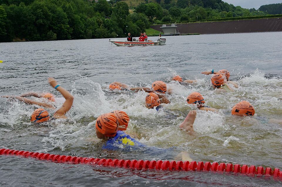 Kronenburg - Mehr als 250 Teilnehmer galt es beim Eifeltriathlon in Kronenburg sanitäts- und wasserrettungsdienstlich zu betreuen.