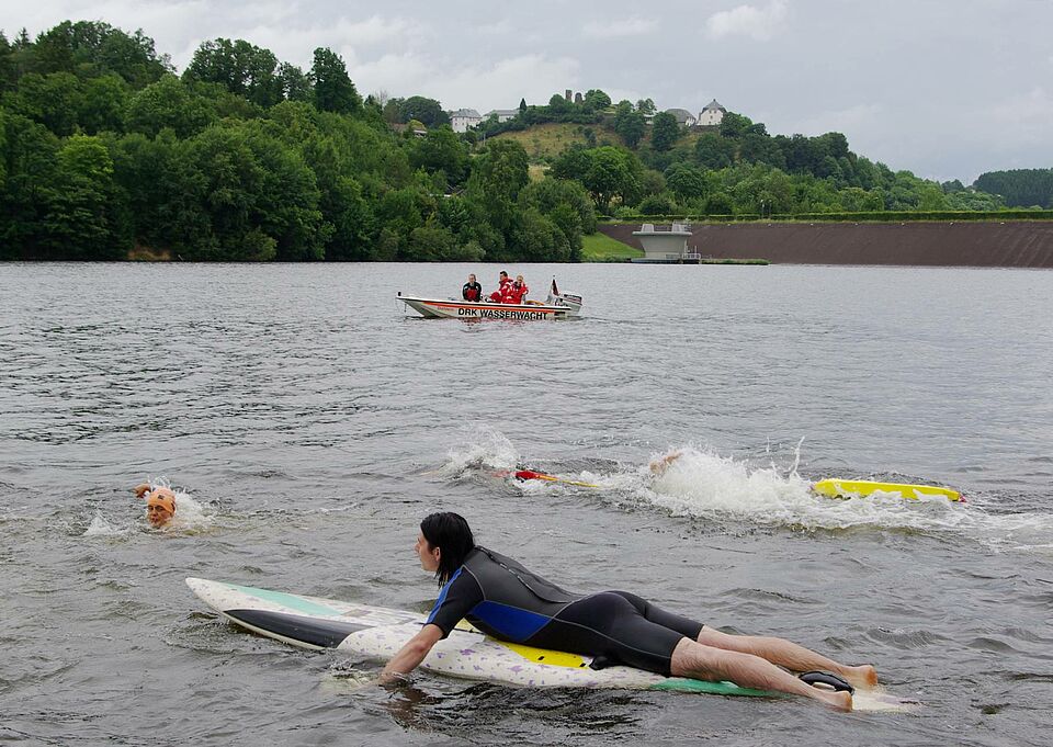 Die Leitung der Wasserrettung beim Schwimmen im Kronenburger See übernahm die Wasserwacht aus Dahlem. Einige aktive Wasserwachtler aus Dahlem nahmen selbst am "Roden-Brot-Eifeltriathlon" teil: