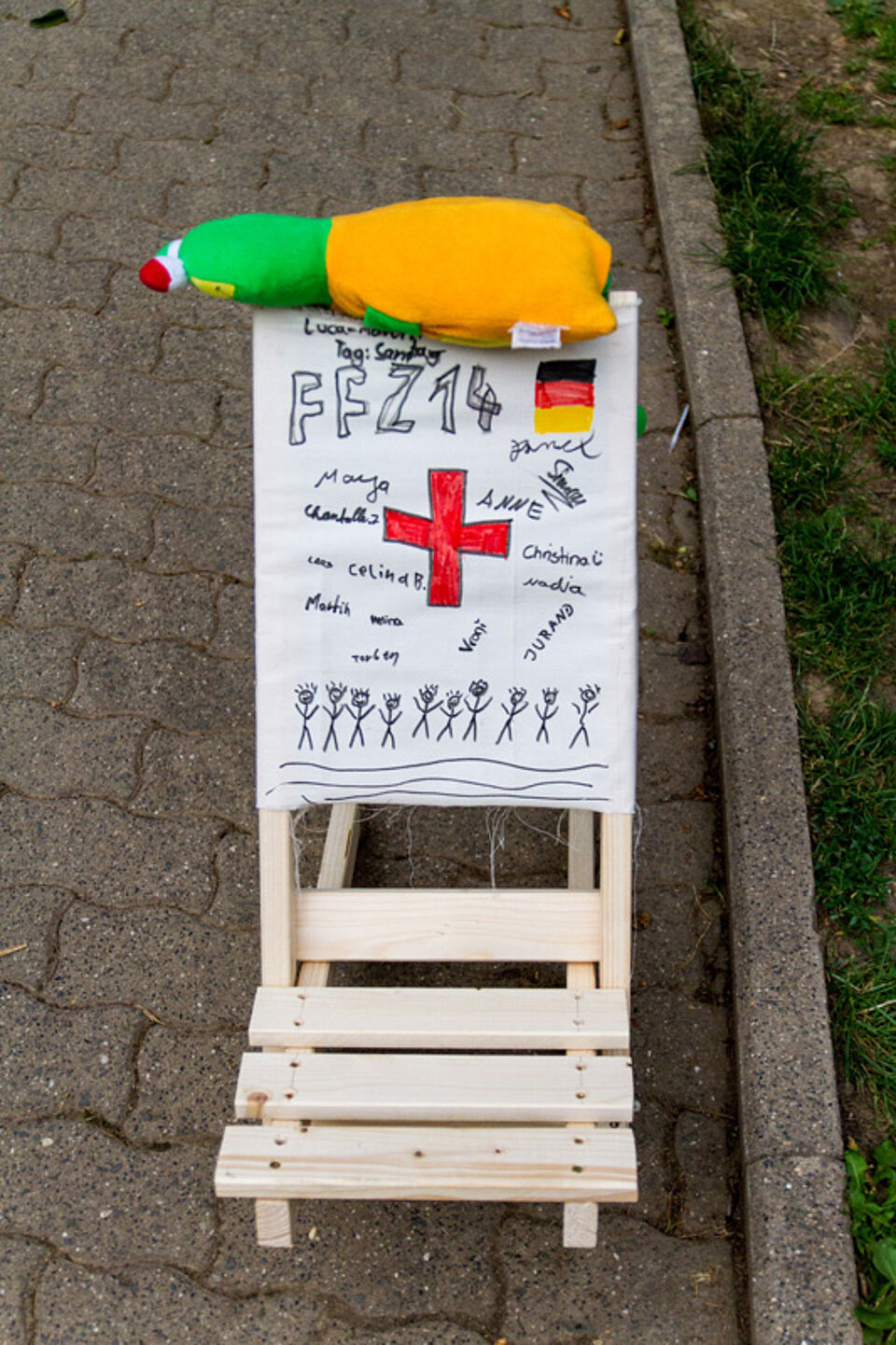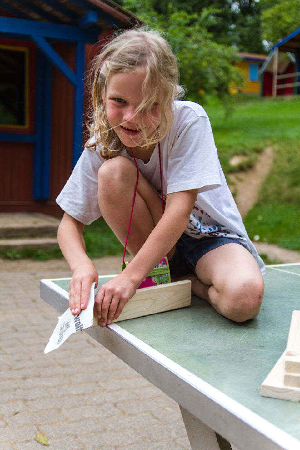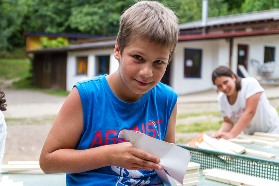 Bild DRK JS | Nachmittags tönte dann Baulärm über den Platz. Die Teilnehmer begannen, ihre Schwedenstühle zu bauen.
