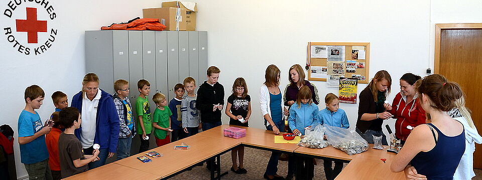 Rolf Klöcker, der Vorsitzende des Roten Kreuzes in der Stadt Mechernich, begrüßte die aus dem ganzen Stadtgebiet, hauptsächlich aber aus den Kernorten Mechernich und Kommern kommenden Mädchen und Jungen, und stellte ihnen ein halbes Dutzend maßgeblicher Leute aus seinem Ortsverein vor, darunter Sarah Schwarz, die sich maßgeblich um den Aufbau eines Jugendrotkreuzes für sechs- bis 21-jährige Ehrenamtler am Bleiberg kümmern will, aber auch Kameradschaftsleiter Sascha Suijkerland, Vorstandsmitglied Peter Reichartz und die vom Roten Kreuz im Kreis Euskirchen in Mechernich angereisten Jugendrotkreuz-Funktionäre Laura Zimmermann und Simon Jägersküpper.