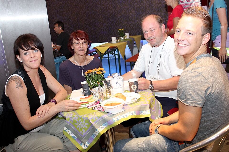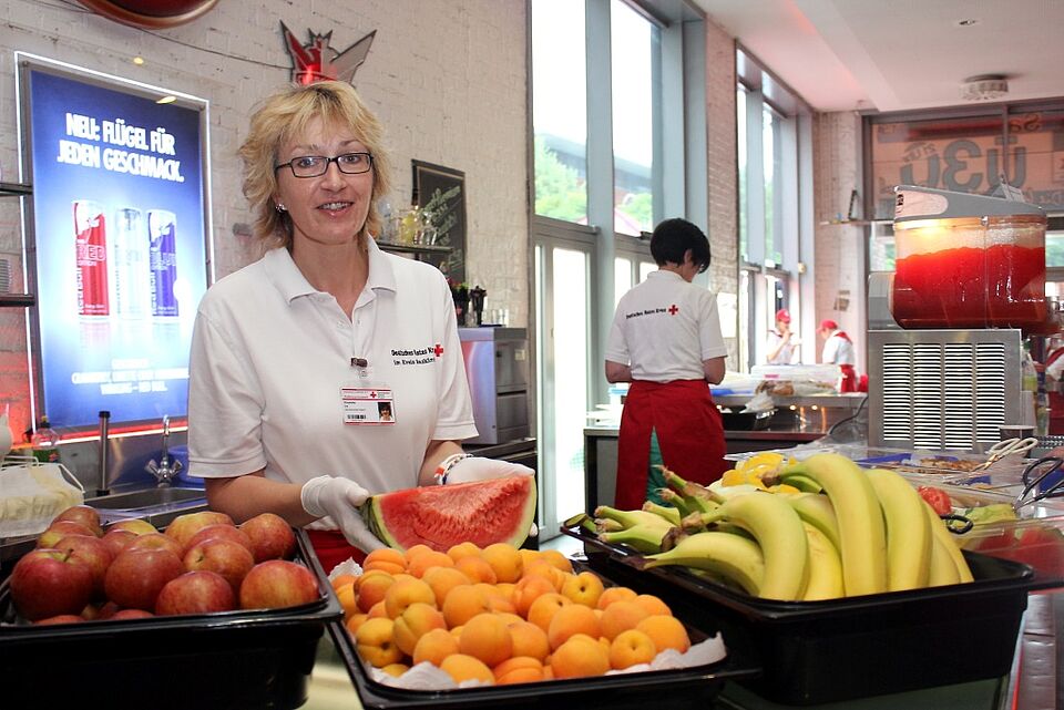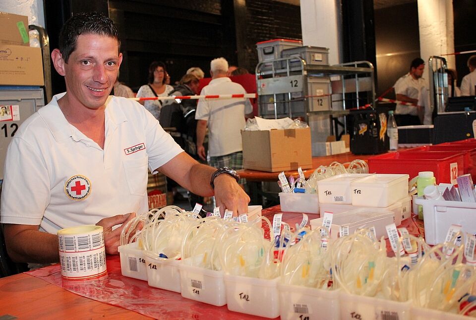 Christian Mahlberg, Geschäftsführer der „Bowl-Fabrik“ in der Zikkurat war in diesem Jahr einer der Erstspender, auf die die Veranstalter stets hoffen, um die Bereitschaft zur Blutspende nachhaltig zu sichern. „Ich bin schon ein bisschen aufgeregt“, verriet Mahlberg, während er sich am Buffet, mit dem das Rotkreuz-Team sich einmal mal mehr selbst übertroffen hatte, stärkte. Er habe sich im Internet informiert und gelernt, dass es wichtig sei, vor der Spende zu frühstücken. Dass alle Freiwilligen - vor und nach der Spende - gut versorgt waren, das hatte das Rotkreuz-Team unter anderem mit 600 Brötchen, über 700 Eiern, je 75 Liter Gyros- und Linsensuppe sowie Bergen von frischem Obst, Kuchen und verschiedenen Getränken sichergestellt.