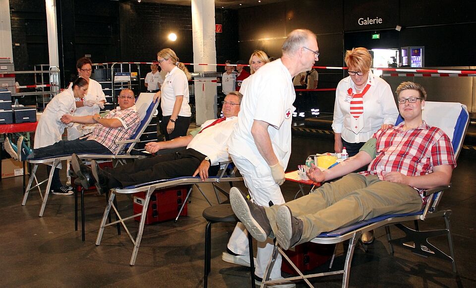 Junge Menschen zu erreichen, das sei einer der Gründe, warum die Rotkreuzler sich vor zehn Jahren ausgerechnet die Großraumdiskothek TON-Fabrik als Veranstaltungsort ausgeguckt hatten, als sie den Blutspendemarathon ins Leben riefen, berichteten der Rotkreuz-Kreisvorsitzende Karl Werner Zimmermann sowie seine Stellvertreterin und Blutspendebeauftragte Edeltraud Engelen. Die „Toni“ um Geschäftsführer Arno Tilz ist auch heute noch verlässlicher Sponsor der Veranstaltung. Für Tilz selbst ist es „Ehrensache“, sich in jedem Jahr auch selbst Blut abzapfen zu lassen.