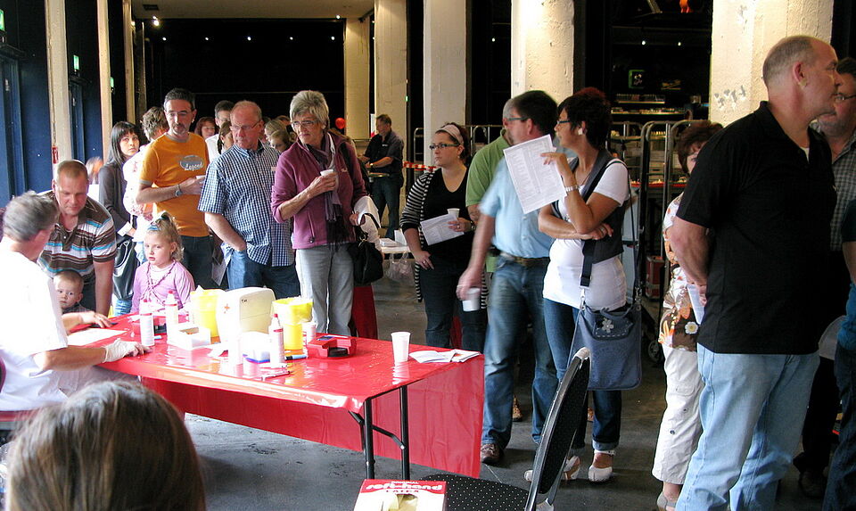 Mechernich/Firmenich – „Klotzen statt kleckern“ heißt die Devise, wenn das Rote Kreuz im Kreis Euskirchen zum Blutspendemarathon einlädt. Zum mittlerweile sechsten Mal fand das „Aderlass-Event“ am vergangenen Sonntag in der Diskothek TON-Fabrik in der Firmenicher Kultur- und Freizeitfabrik Zikkurat statt.