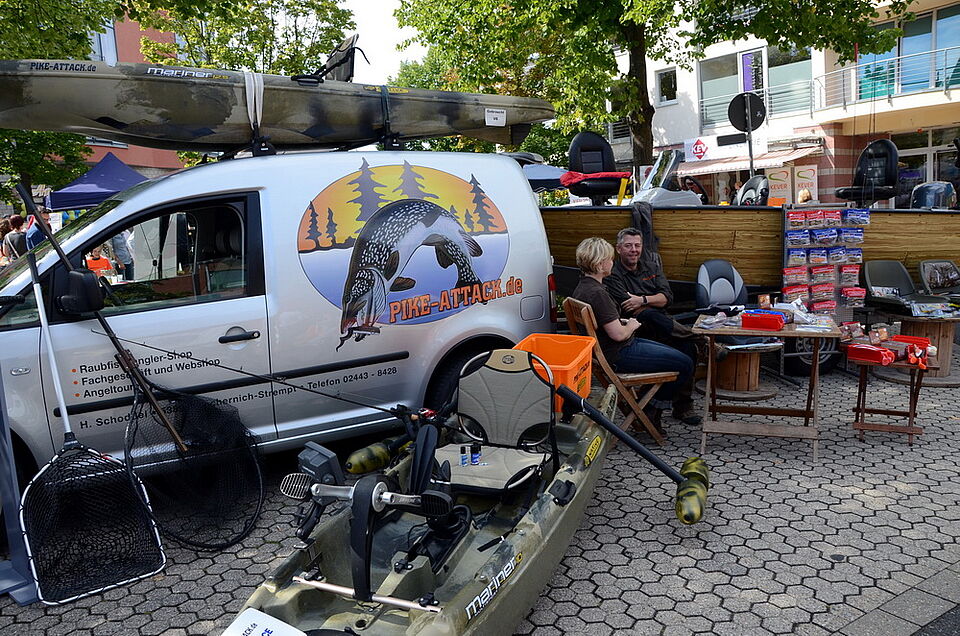 Um nur wenige Beispiele aus dem reichen Informationsangebot der Geschäftswelt zu nennen: Der Angler-Profi und Angelfachzubehör-Dealer Helmut Schoddel aus Mechernich-Strempt zeigte das Equipment seines Unternehmens „Pike-Attac“ . Auch der aus Mechernich-Glehn stammende Otto Sajonskowski hatte auf dem Brunnenfest einen Infostand seines in Ettelscheid beheimateten Bedachungsunternehmens aufgebaut.