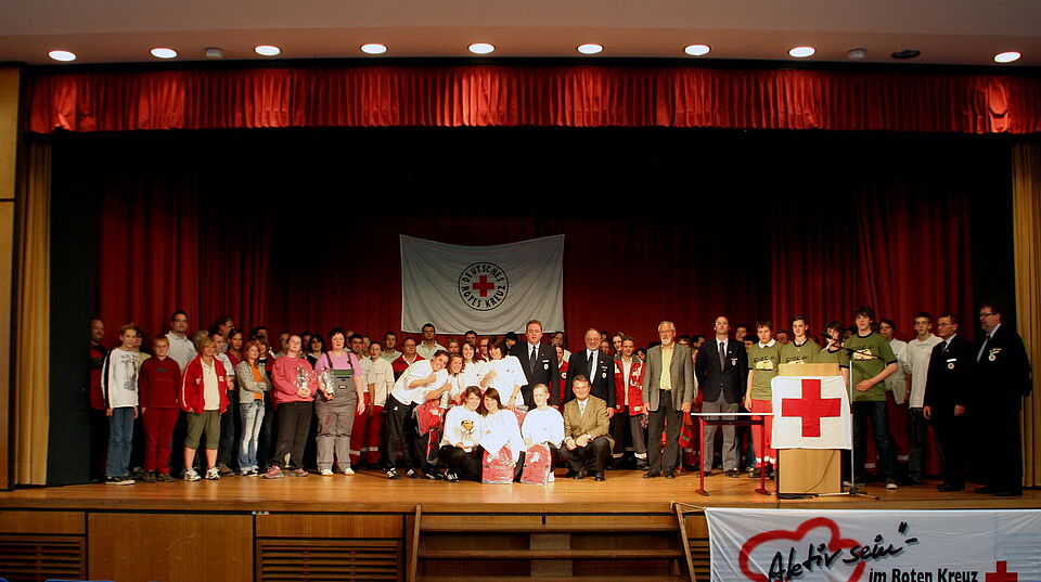 Der am frühen Nachmittag stattfindenden Siegerehrung fieberten natürlich alle Teilnehmer entgegen. Pünktlich um 15.15 Uhr trat Frank Gummelt, der leitende Rotkreuzarzt und Initiator des Wettbewerbs, mit den Worten „Ihr seid alle Gewinner“ auf die Bühne.