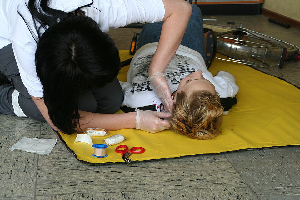 Bild DRK KM | Hier kontrolliert eine Teilnehmerin die Atmung.
