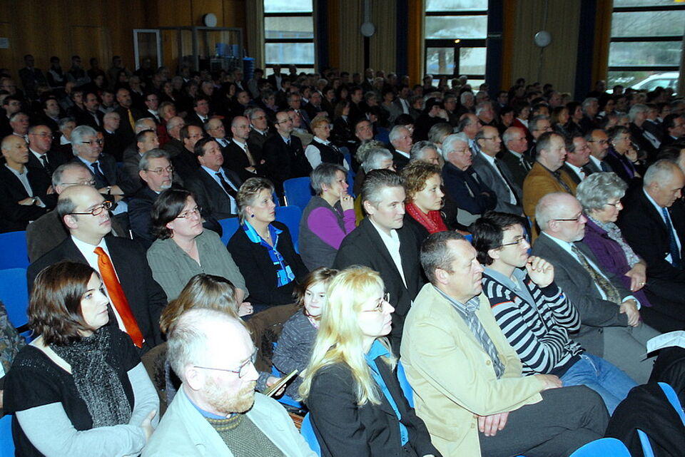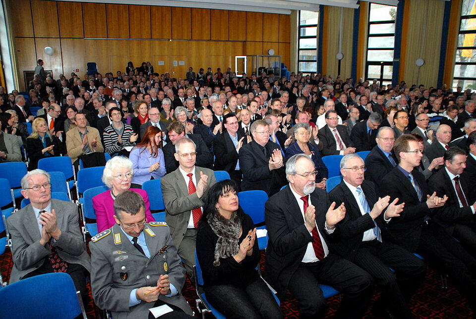 Beim Neujahrsempfang im städtischen Schulzentrum wachte das Rote Kreuz über die Sicherheit von 500 Teilnehmern - Bürgermeister Dr. Hans-Peter Schick sagte: „Finanzkrise trifft Kommunen zeitversetzt um ein Jahr – Bund, und Länder verteilen gleichwohl weiterhin Aufgaben, aber nicht das erforderliche Geld nach „unten“, und der Kreis reicht seine Mehraufwendungen an die Kommunen weiter - Verwaltungschef analysiert und nennt klare Konsequenzen: „Gerechte Gemeindefinanzierung, Kreis ins Haushaltssicherungskonzept“