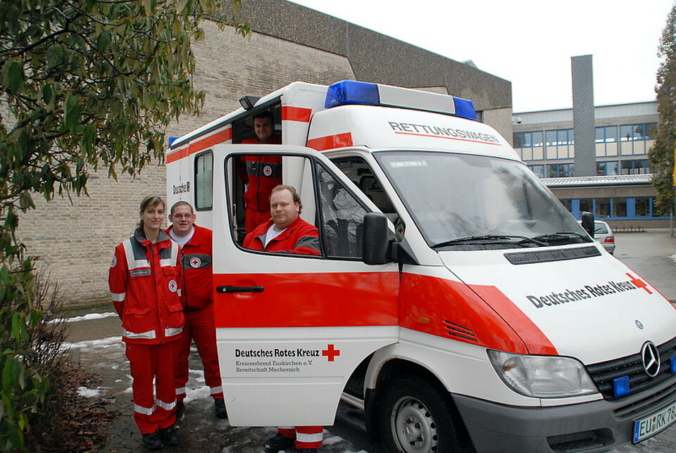 Auch das Rote Kreuz selbst war nicht nur mit „Sanis“ und Fahrzeug vertreten, sondern gehörte auch zu den geladenen Gästen, die sich im Stadtgebiet bürgerschaftlich und ehrenamtlich stark engagieren. Sybille Sennerich, die Blutspendenbeauftragte und „Grand Dame“ des Mechernicher Rotkreuz-Ortsvereins, sowie dessen Vorsitzender Rolf Klöcker vertraten die Farben Henry Dunants.