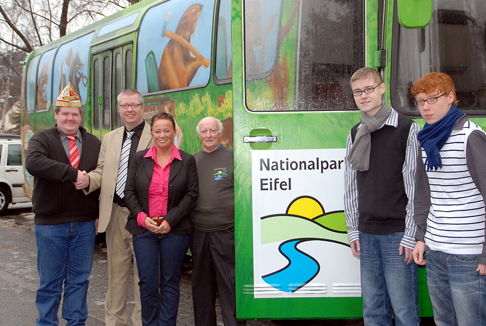 Im Anschluss an die Rede des Bürgermeisters richtete sich Dirk Gemünd, der Organisationsleiter vom Förderverein des Nationalparks Eifel, an die Gäste und informierte über die einjährige Patenschaft zwischen der Stadt Mechernich und dem Nationalpark.