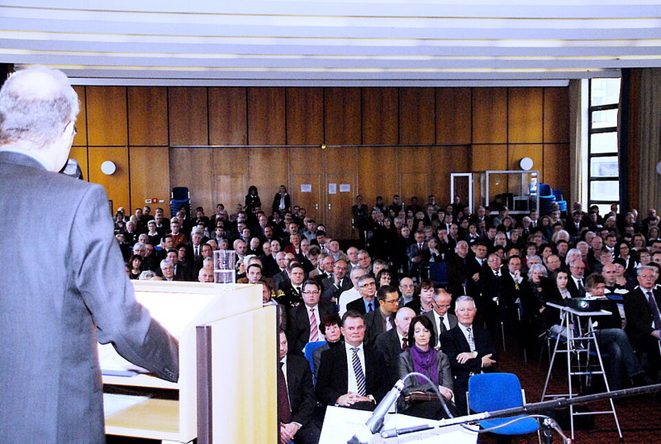 Bürgermeister Dr. Hans-Peter Schick sagte in seiner Neujahrsrede, die Finanzkrise treffe die öffentlichen Haushalte zeitversetzt um ein Jahr. Während die Wirtschaft dank überlebenswichtiger Stützungskäufe der Bundesregierung wieder gesunde, gingen die Gebietskörperschaften und Kommunen jetzt finanziell in die Knie. Das Wachstumsbeschleunigungsgesetz der neuen schwarz-gelben Bundesregierung bezeichnete Schick als Prestigeobjekt.