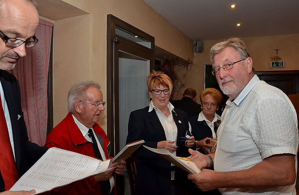 Auch Rotkreuz-Vize-Vorsitzender und Diakon Manfred „Manni“ Lang war im Einsatz. Nach der Auszeichnung der 25maligen, 50maligen, hundertmaligen und 125maligen Blutspender sowie einem ansprechenden Abendessen unterhielt er die Teilnehmer mit seinen Eifeler Anekdoten und Schmonzetten.