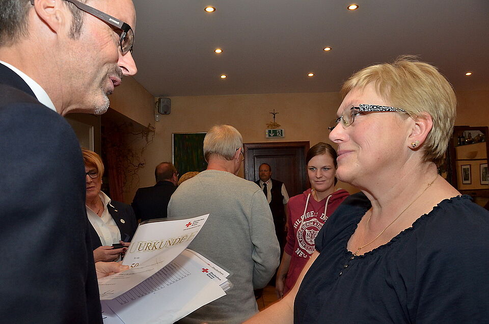 Andererseits freute sich Weilerswist am rührigen Mechernicher Rotkreuz-Ortsverein und seinen zahlreichen Aktivitäten, nicht nur, aber auch in Sachen Blutspende. Exemplarisch nannte der Vize-Bürgermeister seine Nachbarin Sibille Sennerich und Nicole Thielen, deren Nachfolgerin in Sachen Blutspende-Teamleitung.