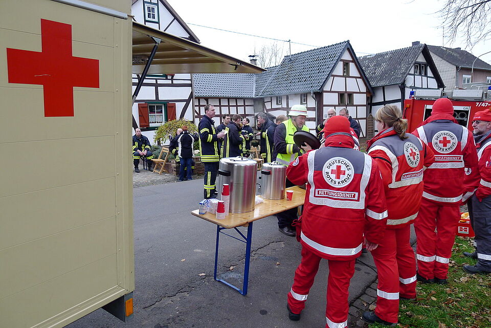 Das Rote Kreuz war zur Unterstützung der Feuerwehrkameraden vor Ort.