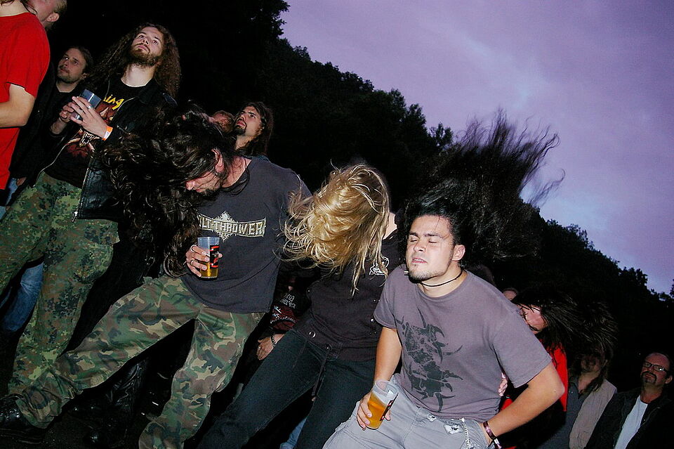 Dabei bewiesen die Hardrocker und Metaler, dass sie einen durchaus speziellen Humor lieben. „Und nun ein Lied über die Zahnseide der Natur – das Mettbrötchen“, kündigte etwa Guido Meyer de Voltaire, Sänger der Band „Aardvarks“ den Song „Meat“ an. Als Headliner, also Hauptbands, konnte der Veranstalter für den ersten Festival-Tag „Perzonal War“ und den zweiten „Motorjesus“ gewinnen. An beiden Tagen bevölkerten die „Metal-Jünger“ das Gelände – und zeigten dabei auch begeistert, wozu ihre Langhaarfrisuren eigentlich da sind: zum „Headbanging“ nämlich. Das bedeutet, dass man das Haupt heftig zum Rhythmus der Musik schüttelt und die Haare fliegen lässt.