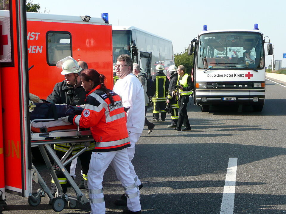 Bild DRK EU Archiv | Wie hier auf der A 61 wurde auch der Verletzte beim Unfall auf der A 1 vom Rettungsdienst versorgt und in ein Krankenhaus transportiert.