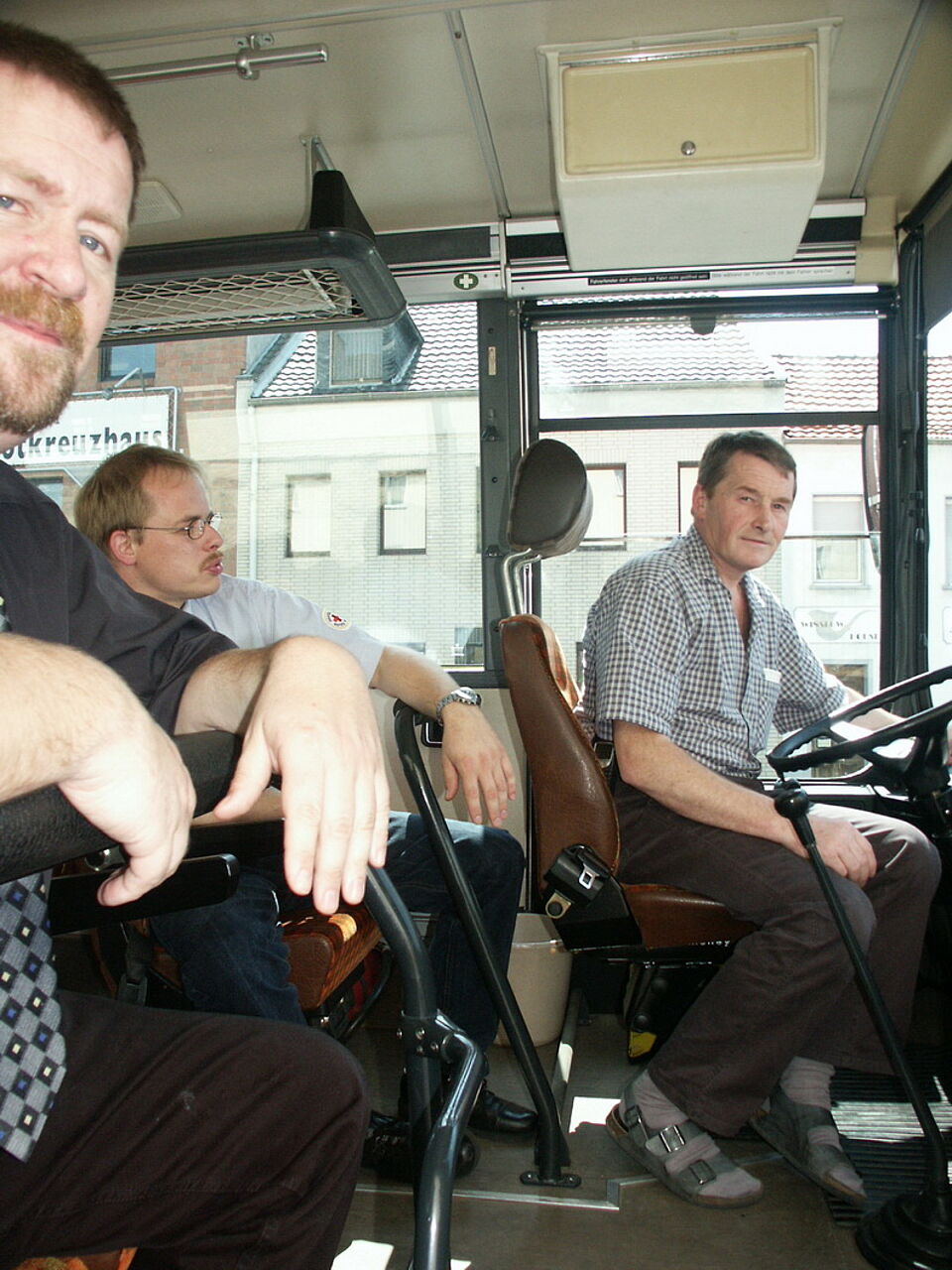 Bild DRK EU Archiv | Herbert Schmitz (r), der stellvertretende Kreisbereitschaftsleiter und Schirrmeister des Roten Kreuzes im Kreis Euskirchen, brachte den Bus zur Unfallstelle bei Mechernich. Die Fahrgäste waren froh, nach dem schlimmen Unfall noch in der Nacht wieder in ihre Heimat rund um Prüm gebracht zu werden. Auf der Fahrt wurden sie von einem ehrenamtlichen Team der Rotkreuz-Krisenintervention betreut.