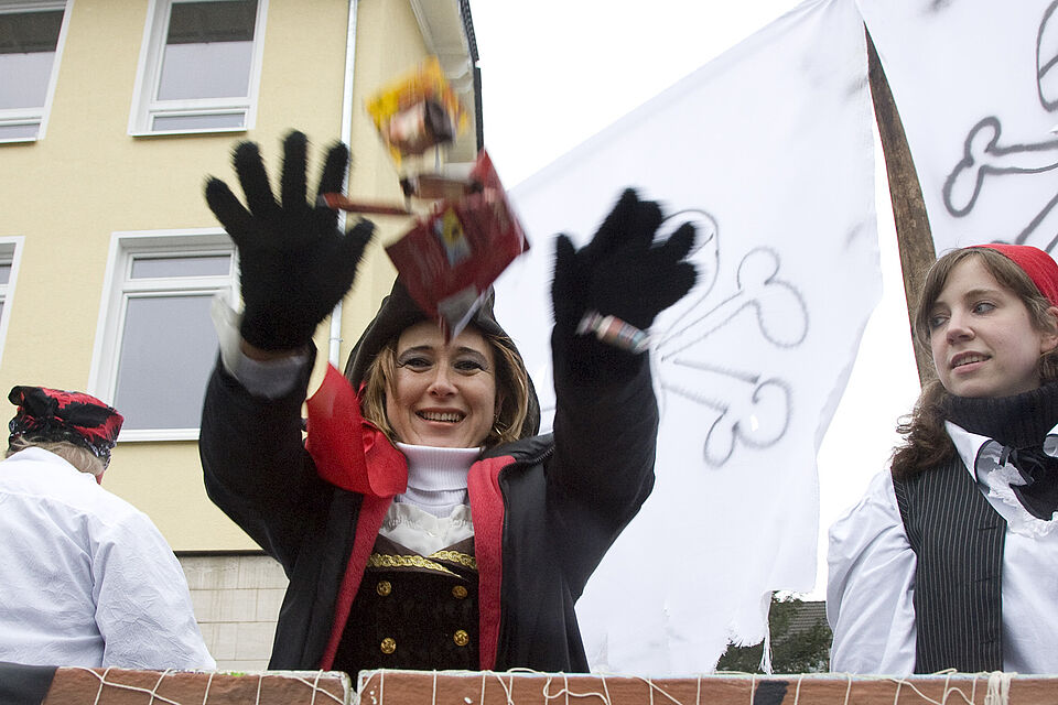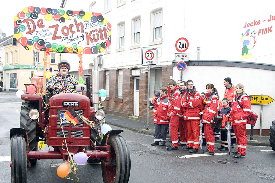 Angeführt hat Ernst Schoddel mit seinem 32 PS starken 1957er Fahr-Trecker den Narrentross. Teufel aus Hostel feierten die Mechernicher ebenso begeistert wie die „Jecken Piraten aus dem Kirchenschiff“ vom Jugendchor Mechernich unter der Leitung von Rainer Pütz.
