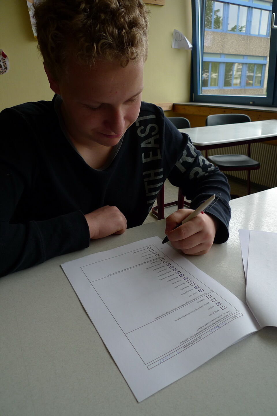Bild DRK ZR | Natürlich gibt es auch einen schriftlichen Teil mit Fragen zur Ersten Hilfe und zum Roten Kreuz.