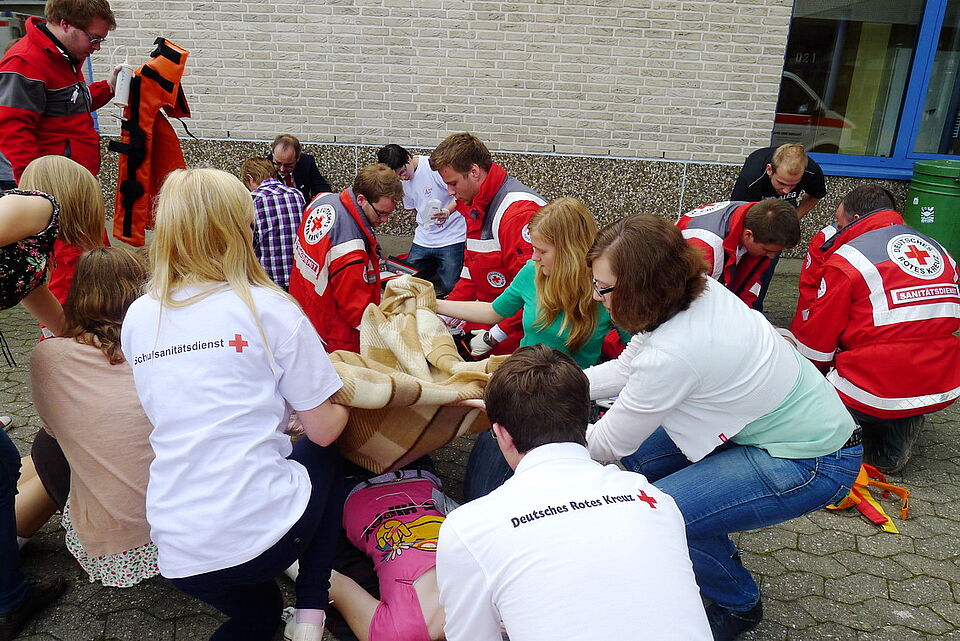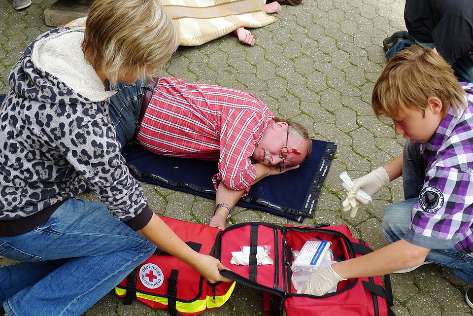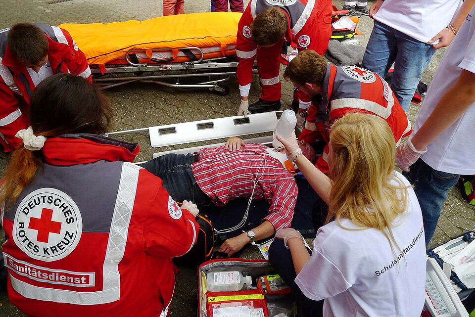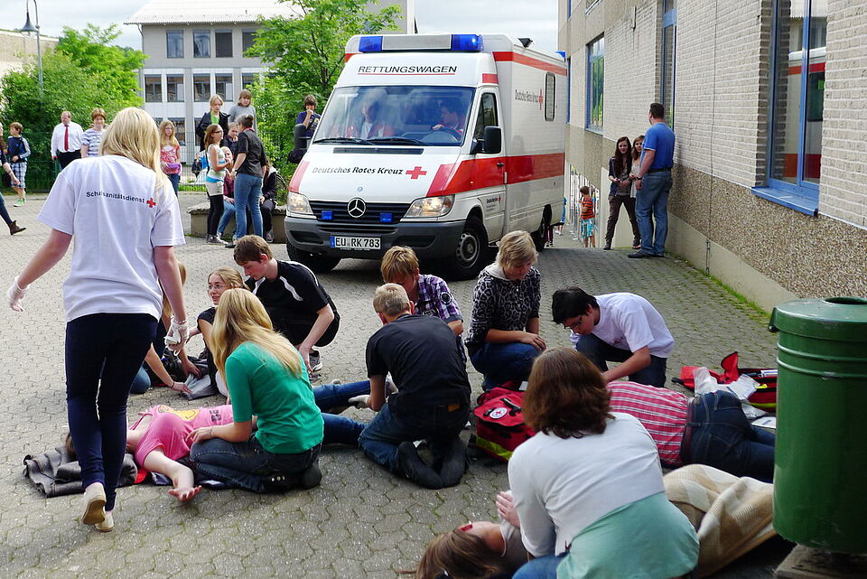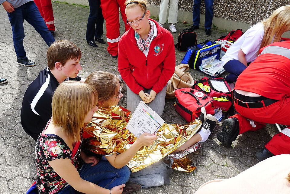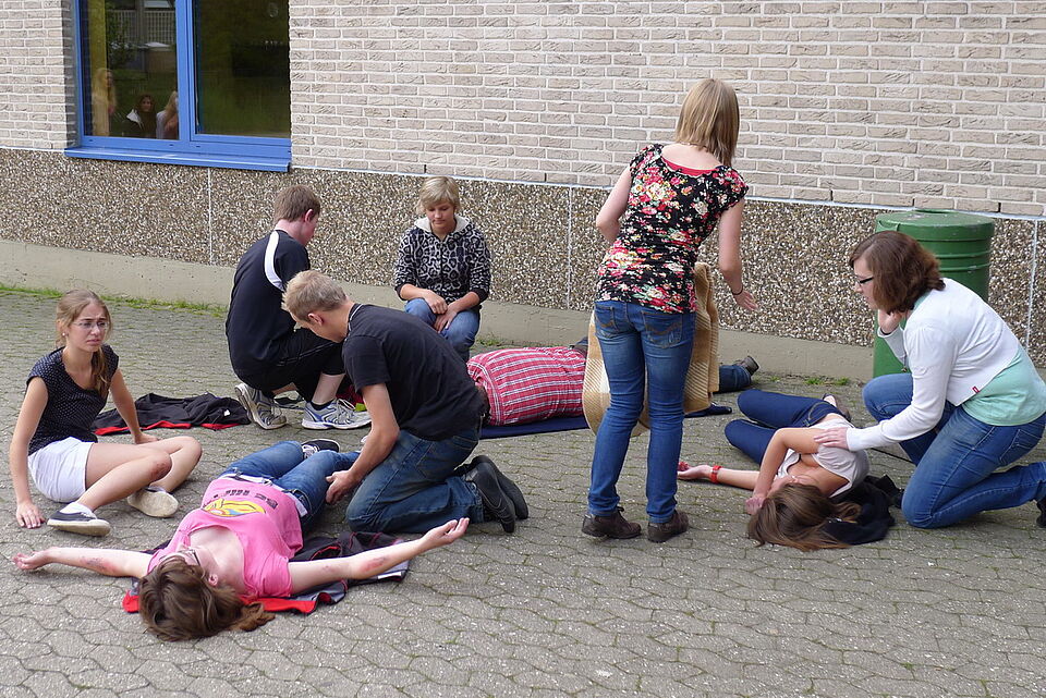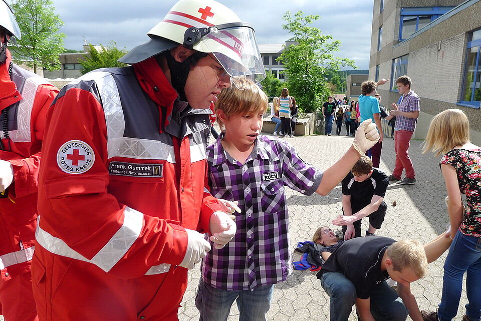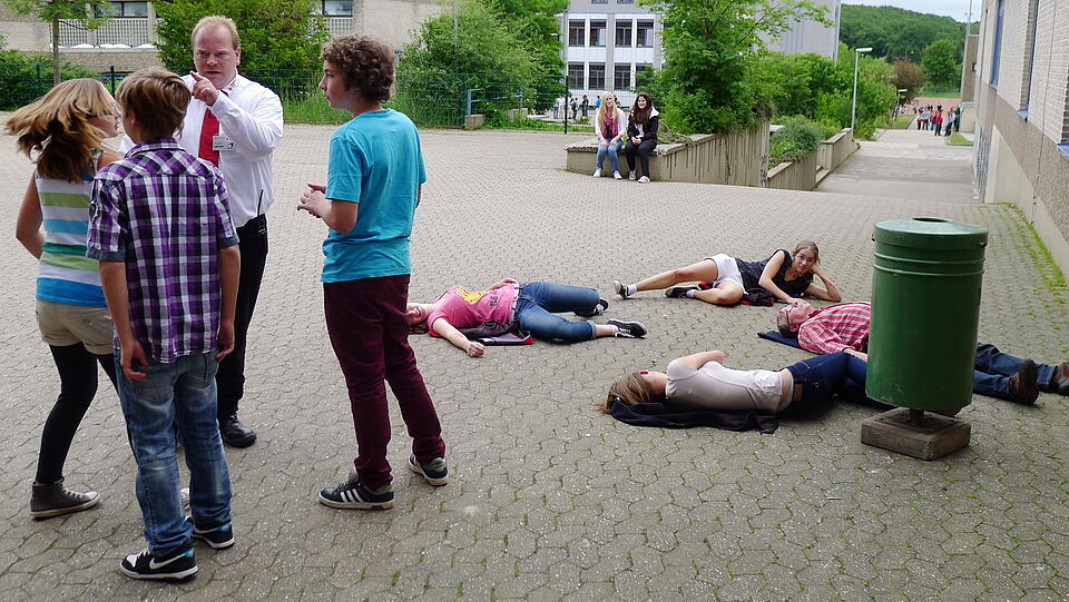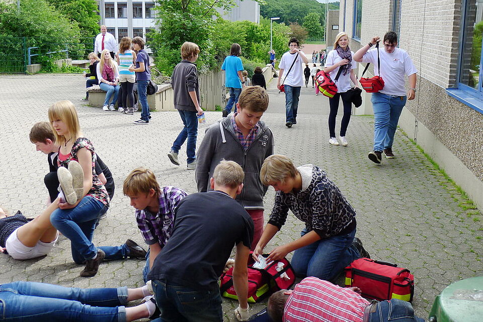 Fünf Verletzte und mehrere schockierte Mitschülerinnen auf dem Schulhof des Gymnasiums am Turmhof in Mechernich. Da werden die Freiwilligen der Schulsanitätsdienste ernsthaft gefordert.