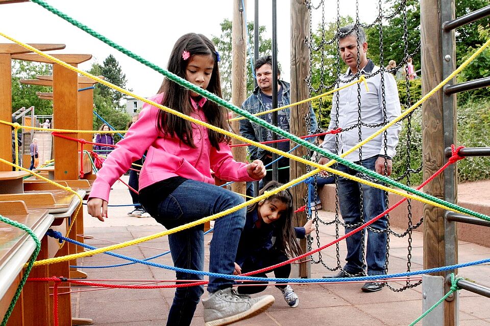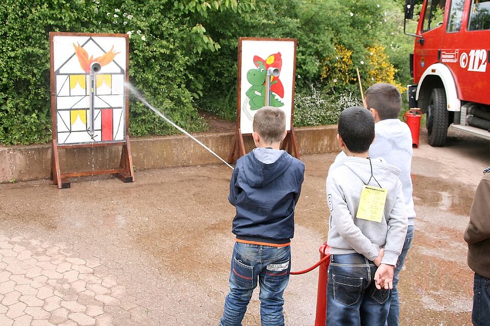 Mechernich - 5,10 Meter – Das war zur Halbzeit der Rekord im Kirschkern-Weitspucken. Der Geschicklichkeitstest war eines der vielen Angebote von verschiedenen Vereinen und Institutionen beim Schulfest der Katholischen Grundschule (KGS) in Mechernich. So versuchten sich die Kinder an der „Seilspinne“, einem spinnennetzartigen Geschicklichkeitsparcours, übten sich im Zielen bei einer Übung der Jugendfeuerwehr Mechernich oder besuchten das „Haus der kleinen Forscher“. An jeder Station konnten sie ihre Gewinnkarten abstempeln lassen. Das ließen sich die Mechernicher Grundschüler nicht zweimal sagen, denn zu gewinnen gab es unter anderem einmal hausaufgabenfrei.
