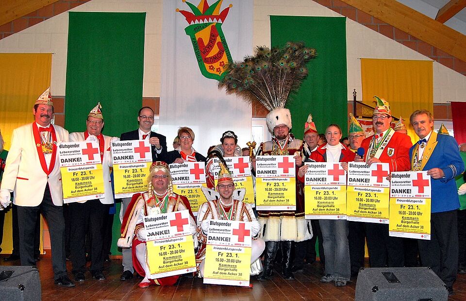 Mechernich-Kommern – Passend zum DRK-Slogan „Aus Liebe zum Menschen“ setzen nach dem Vorbild der Euskirchener und Zülpicher nun auch Karnevalisten aus dem Stadtgebiet Mechernich ein Zeichen der Humanität und rufen erstmals zu einer närrischen Blutspende auf. Am Freitag, 23. Januar, von 16 bis 20 Uhr, sind alle Interessierten aufgerufen, sich an der jecken Blutspende in der Kommerner Bürgerhalle, Auf dem Acker 38, zu beteiligen.