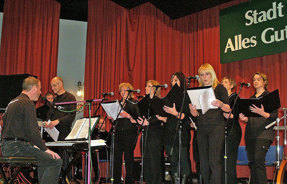 Für die musikalische Untermalung des Neujahrsempfang sorgte der Strempter Chor „Rainer Wahnsinn“. Neben ruhigen Songs wie „Killing me softly“ und „Can you fell the Love tonight“ gab der junge Chor um Rainer Pütz auch flotte Stücke wie „O Happy Dy“ oder aber „Uptown Grl“ zum Besten. Das Publikum zeigte sich von dem musikalischen Können des Chores begeistert und verabschiedete die Sängerinnen mit stehenden Ovationen.