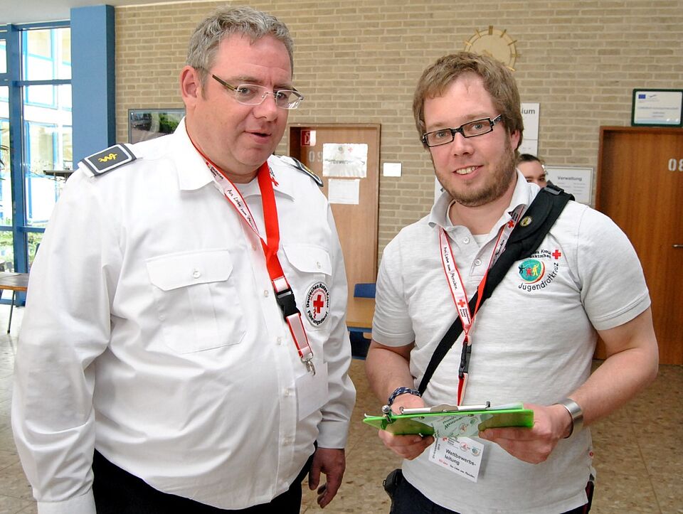 Der Erste-Hilfe-Wettbewerb diene nicht nur dem Leistungsvergleich, sondern man hoffe, auf diese Weise auch die Bindung ans DRK stärken sowie Übergänge schließen zu können, etwa vom Schulsanitätsdienst zum Roten Kreuz oder vom Jugendrotkreuz zum „erwachsenen“ DRK. Daher sei die Teilnehmerschar ganz bewusst heterogen gehalten, erläutert der Kreisverbandsarzt. Den vielen Helfern, die dafür im Einsatz waren und insbesondere den Lehrern, die zur Betreuung der Schulsanitäter gekommen waren, zollte Gummelt seine Anerkennung: „Die opfern alle ihre Freizeit dafür.“