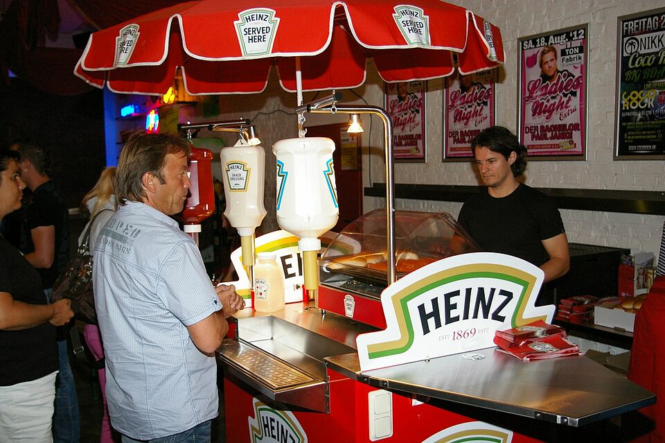 Unterstützung bekamen die Rotkreuz-Helfer von der Düsseldorfer H.J. Heinz GmbH. Der Ketchup-Hersteller zollte den Spendern seine Anerkennung, indem er einen Hotdog-Stand aufgebaut hatte. Am Ausgang schließlich verteilte Rotkreuzler Markus Derres Flaschen mit Heinz-Ketchup, die mit den exklusiven Aufschriften „Blutsbruder“, „Blutsschwester“ oder „Lebensretter“ bedruckt waren. So erhielt jeder Spender für 500 Milliliter Blut im „Gegenzug“ die gleiche Menge an Ketchup. Auch eine Mini-Taschenlampe des Roten Kreuzes gehörte zum Dankeschön für jeden.