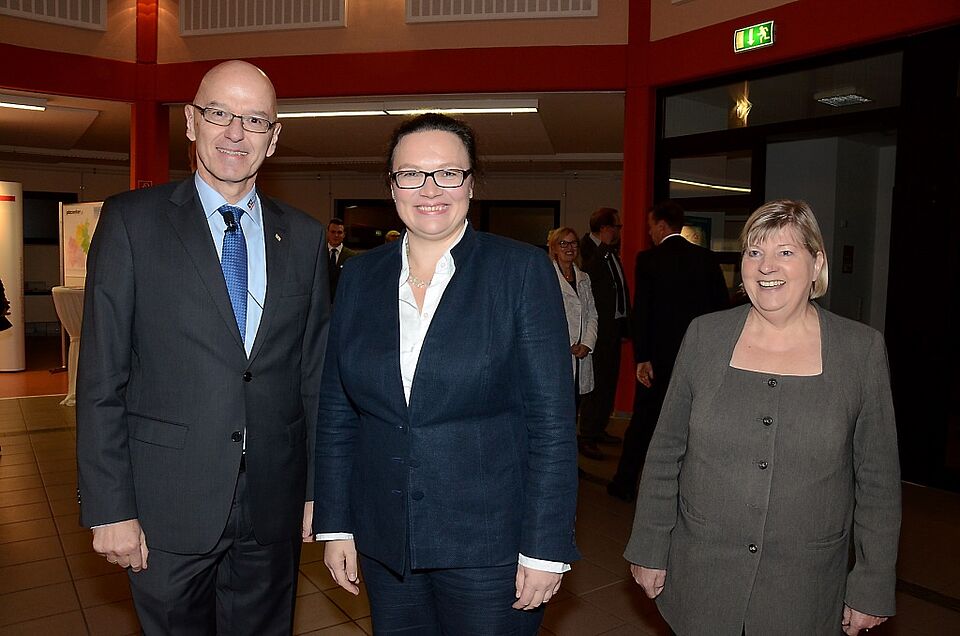 Bevor die Ministerin und VR-Bank-Vorstandsvorsitzender Bernd Altgen sich mit Hans Peter Wollseifer, dem Präsidenten des Zentralverbandes Deutsches Handwerk, Michael F. Bayer, dem Hauptgeschäftsführer der Industrie-und Handelskammer zu Aachen, und mit Moderator Frank Hauser, dem Geschäftsführer des Instituts „Great Place To Work“ aus Köln, zur Podiumsdiskussion zusammensetzten, gab es noch eine hohe Auszeichnung des Ministeriums zu vergeben.