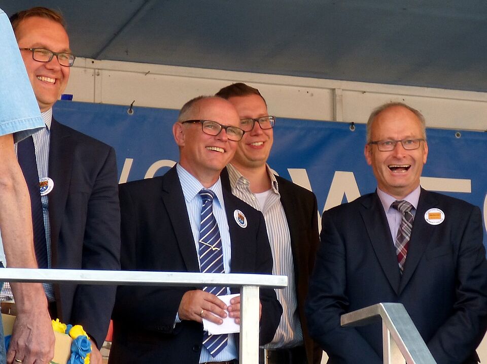 Einen besonderen Dank richtete er an das Organisationskomitee um Stadtkämmerer Ralf Claßen, das die Feierlichkeiten in nur sechs Monaten auf die Beine gestellt hatte. Mit von der Partie waren Claßens Verwaltungskollege Dennis Müller, Björn Wassong vom Vereinskartell Weyer, Margret Eich und Petra Himmrich vom Gewerbeverein „Mechernich aktiv“, Bettina Möhrer und Reinhard Kijewski vom KC „Blei-Fööss“, der Roggendorfer Ortsvorsteher Thomas Tampier und Manfred Lang von der Agentur ProfiPress.