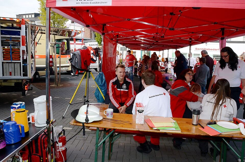 Das Rote Kreuz wachte bei „40 Jahre Stadt Mechernich“ nicht nur über die Gesundheit Tausender Besucher, die Truppe um Rolf Klöcker, Nicole Thielen und Sascha Suijkerland demonstrierte auch Präsenz auf vielen Feldern - Nach dem Festzug sangen und spielten Musikvereine und Menschenmassen vor dem Rathaus erst die lokale Nationalhymne „Bergmann, Glück auf“ und dann „Einigkeit und Recht und Freiheit“ – Tolle Stimmung bis in den späten Abend hinein auf der RWE-Bühne mit „Eifel-Gäng“ und „Wibbelstetz“ – Ausstellungen, Referate und Aufführungen vom Feinsten