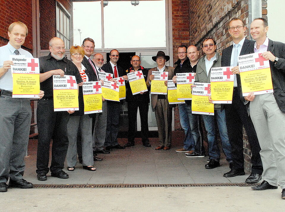 Außer ihnen waren bei der Pressekonferenz auch andere Unterstützer wie Arnold Tilz (TON-Fabrik), Rolf Schäfer (Schäfer-Reisen), Holger Schmitz und Thomas Hambach (Eifel-Therme Zikkurat GmbH), Manfred Lang (Agentur ProfiPress), Holger Schmitz (Eifel-Therme Zikkurat), Alexander Koser (BigBowl) und René Hof (Agentur „Eventwerker“) vertreten, um die Menschen im Kreis Euskirchen und darüber hinaus um ihre Teilnahme am 6. Blutspendemarathon am Sonntag, 14. August, von 11 bis 17 Uhr in der TON-Fabrik der Freizeit- und Kulturfabrik Zikkurat zu bitten.