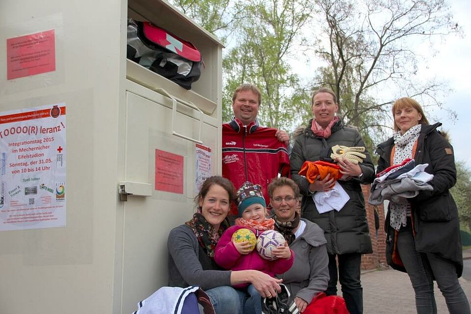 Mechernich – Für ihren Integrationstag für Flüchtlingskinder am 31. Mai sucht die Jugendabteilug der TuS Mechernich gut erhaltene Sportbekleidung. Unterstützung erfuhren die Sportler dabei nun vom Rotkreuz-Kreisverband Euskirchen, der für die Sammelaktion des Vereins einen Kleidercontainer am Eifelstadion, Johannesweg/Ecke Schimmelsweg, aufgestellt hat.