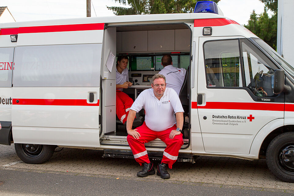 BILD DRK JS| Auch für die Sicherheit sorgte das Rote Kreuz. Im Bild der Wagen der Einsatzführung und der Rotkreuzarzt Frank Gummelt.