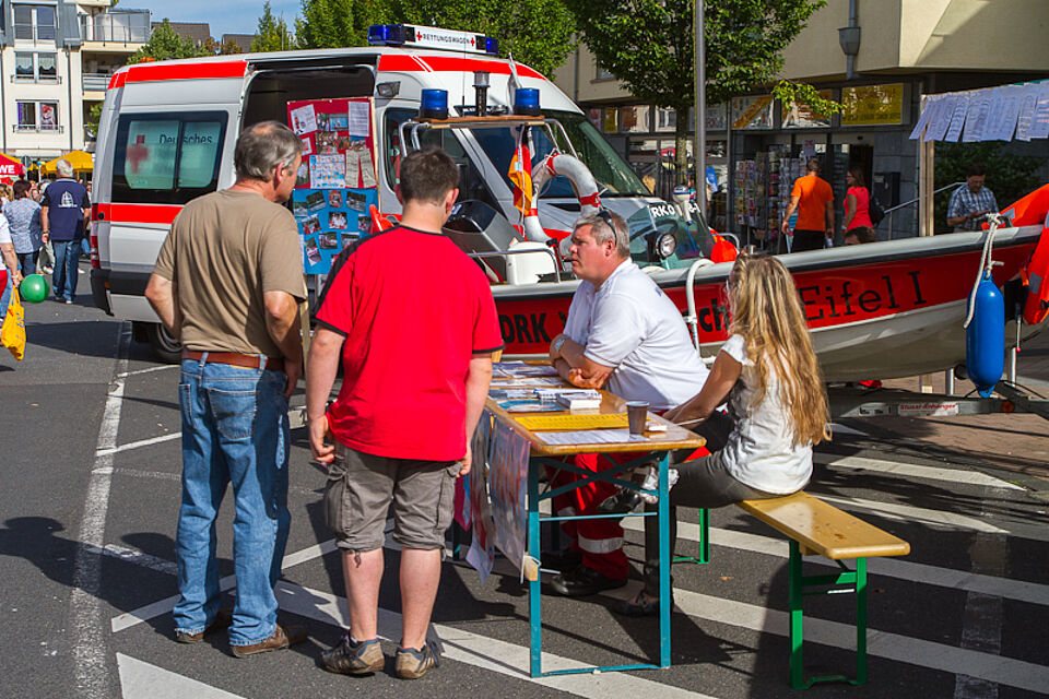 BILD DRK JS| ... und Informationen über die vielfältigen Möglichkeiten im Ehrenamt, wie hier zum Beispiel in der Wasserwacht Kall, wurden den Besuchern geboten.