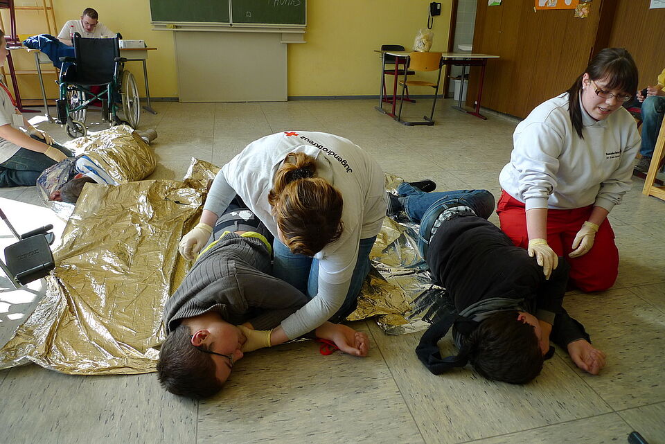 Rund 120 Rotkreuzler, Jugendrotkreuzler und Schulsanitäter maßen in 19 Kleingruppen ihr Können in Erster Hilfe miteinander.