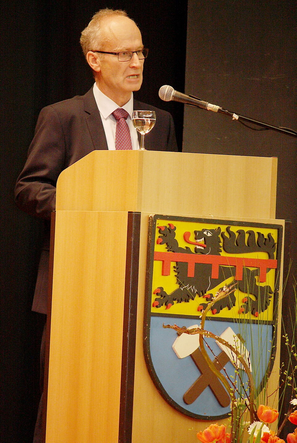 Er erinnerte an die Entstehung der Städtepartnerschaft durch die Bemühungen des inzwischen hochbetagten Französischlehrers Wolfgang Müller. Mit „Weitsicht und Weltoffenheit“ habe er die bis heute lebendige Städtepartnerschaft aufgebaut, die auf den „Freundschaften und gegenseitigen Besuchen ganz normaler Menschen aus beiden Städten“ basiere. Auf diese Weise konnten Ressentiments und Berührungsängste abgebaut werden, die vor allem von den unaussprechlichen Grausamkeiten des Zweiten Weltkriegs herrührten.