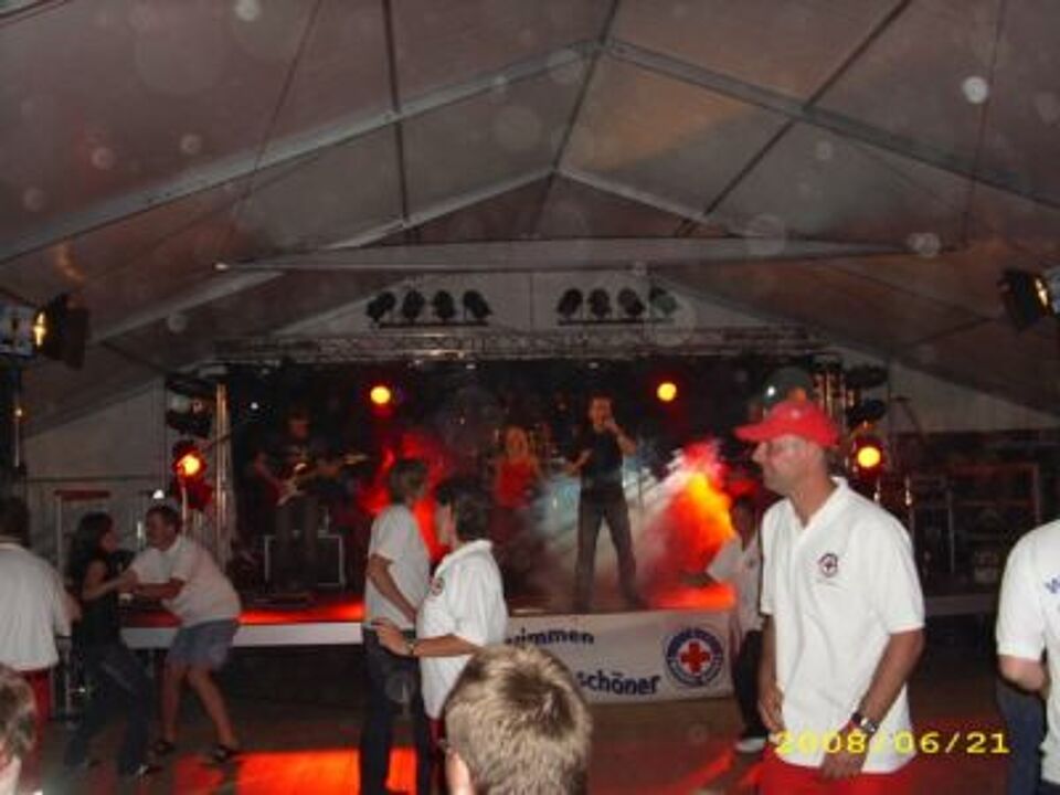 Die Rock Coverband Famous und die Sängerin Antonia, die zuvor den Weltrekord begleitet hatte, spielten bis spät in die Nacht und ließen keinerlei Müdigkeit zu. Danach konnten die Wasserwachtler die Nacht an dem 5 Meter hohem entzündeten Feuer ausklingen lassen.