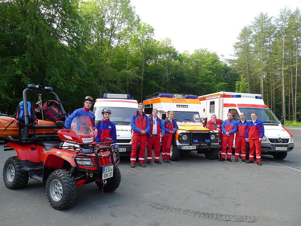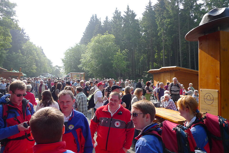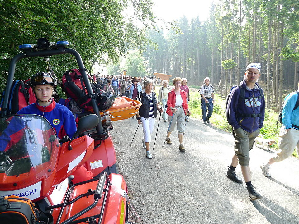 Für eventuelle Notfälle in dem unwegsamen Gelände des Nationalparks stand ein Team der Rotkreuz-Bergwacht mit Geländefahrzeugen bereit.