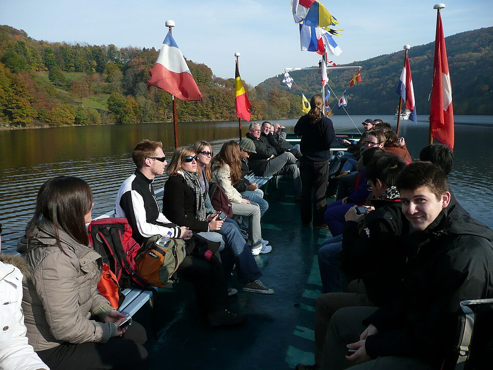 Bild DRK ZR | Die Studenten der Fachochschule Aachen waren mit dem Bus angereist und wurden in Einruhr von der Bergwacht empfangen. Von dort ging es dann mit dem Schiff zum Ausgangspunkt der Wanderung nach Jägersweiler.