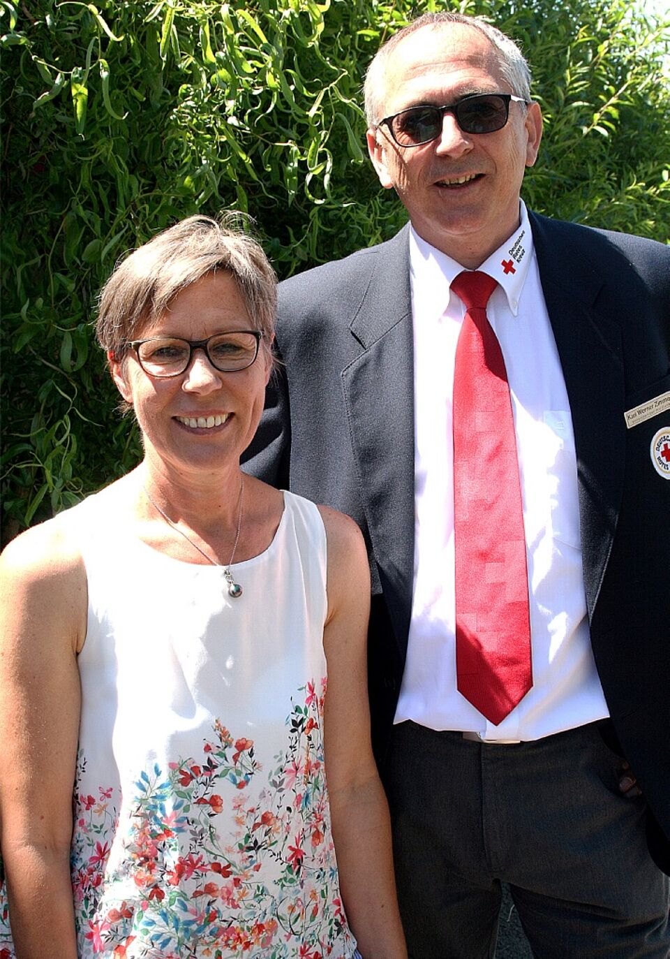 Kita-Leiterin Irene Müller ist die Frau der ersten Stunde im Nöthener Kindergarten. Die Leiterin begrüßte unter den Gästen nicht nur die drei Kandidaten um das im Herbst neu zu wählende Bad Münstereifeler Stadtoberhaupt, sondern auch den DRK-Kreisvorsitzenden Karl Werner Zimmermann und seine Stellvertreterin Edeltraud Engelen. Zimmermann erklärte bei seiner Ansprache die 24 Kinder in der Nöthener Einrichtung zu „Rokkis“. „Wir haben gut 1.000 Rotkreuzkindergartenkinder in unseren 30 Kindergärten im Kreisgebiet, abgekürzt ‚Rokkis‘. Ihr gehört dazu.“ Aufkleber mit dem Kurzbegriff wurden an Irene Müller übergeben.