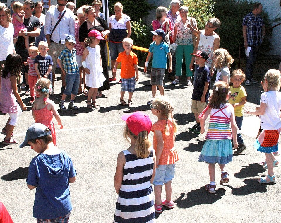 Das „Spiel- und Entdeckerfest“ wurde natürlich auch für einen Rückblick genutzt. Im Sommer 1994 hatte es um die Zukunft der damaligen Räume für die Krabbelgruppe in Nöthen schlecht gestanden, es drohte die Schließung des Betreuungsangebotes, das damals noch in Trägerschaft der Stadt Bad Münstereifel war. Vier Nöthener nahmen daraufhin die Rettung der Betreuungseinrichtung selbst in die Hand. Helmut Müller, Heinz Schumacher und Herbert und Dieter Bützler gründeten einen Förderverein mit dem Ziel eines eigenen Kindergartens in Nöthen.