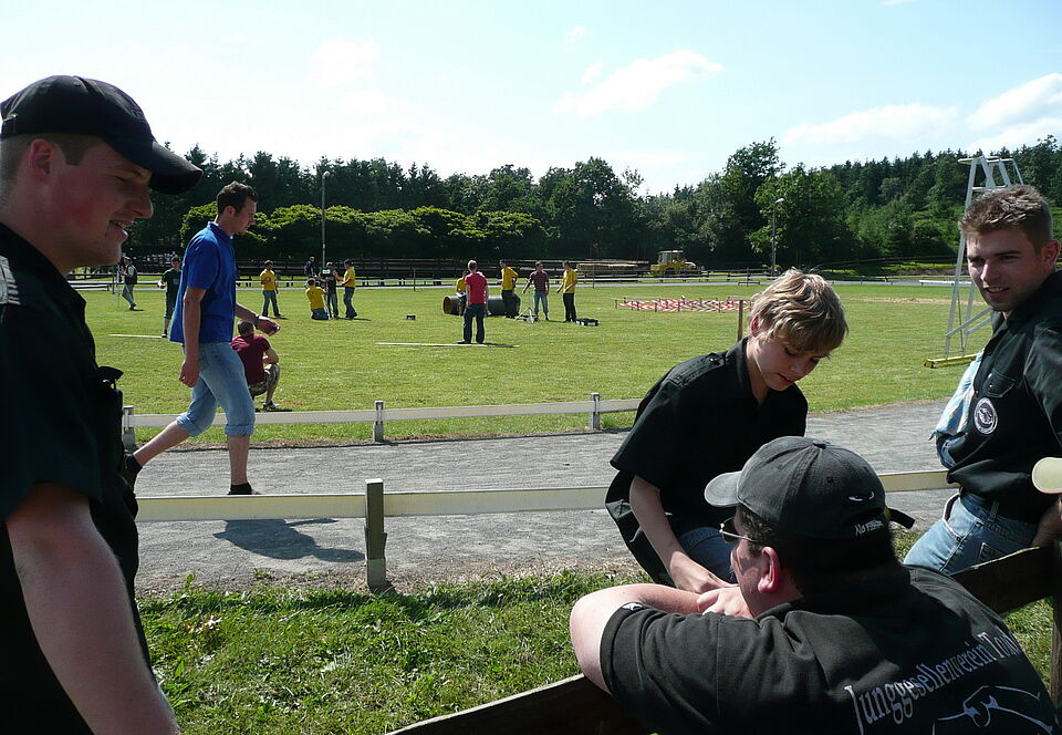 Bild DRK ZR | 13 Mannschaften aus Jungesellenvereinen trafen sich zu ihrer Junggesellenolympiade auf dem Roderather Reitgelände. Auch 2 mutige Gesellinnengruppen stellten sich dem Wettbewerb.
