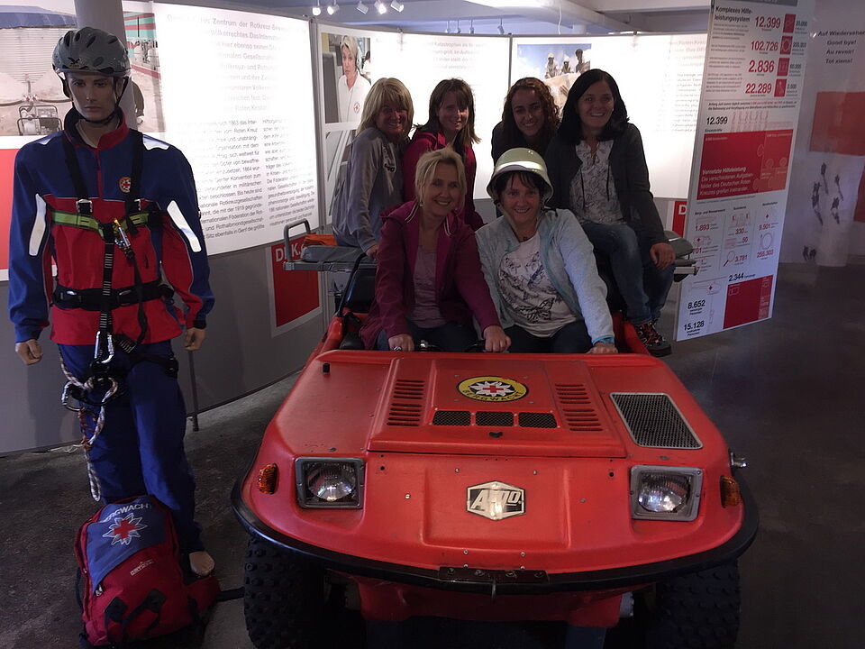 Nach einer Mittagspause haben wir uns im Rotkreuz Museum auf eine Entdeckertour durch das „Abenteuer Menschlichkeit“ begeben, wo neben Filmen, vor allem durch eindrucksvolle Bilder und - zum Teil historische - Ausstellungsstücke die Grundsätze, sowie die Geschichte des Roten Kreuzes und des Roten Halbmondes, von der Gründung bis hin zur Stellung als weltweit größte humanitäre Freiwilligenbewegung, beleuchtet wurden.