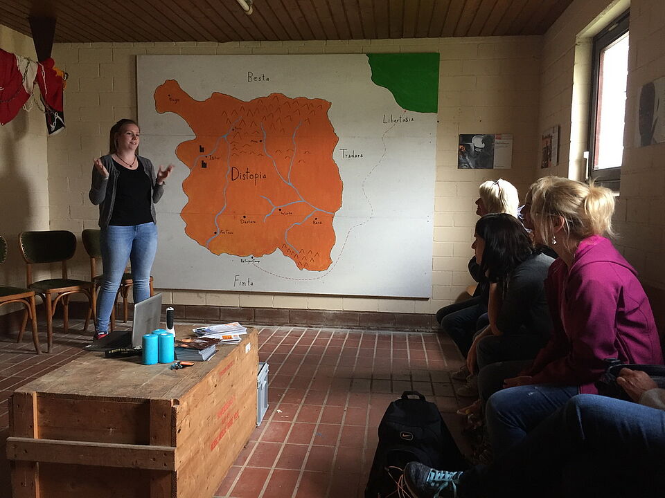 Im Anschluss konnten wir uns im Rotkreuz Fluchthaus mit der „Flucht nach Libertasia“ auf ein spannendes Abenteuer einlassen. Im Stil eines „Escape Rooms“ haben wir hier die Rollen von Flüchtenden eingenommen und uns auf die Flucht aus dem umkämpften Distopia ins friedliche Libertasia begeben. Hierbei hat vor allem die aktive Auseinandersetzung mit einer zentralen, weltpolitischen Thematik im Vordergrund gestanden, aber auch der Versuch, eine Idee davon zu entwickeln, wie eine beispielhafte Flucht aussehen könnte.