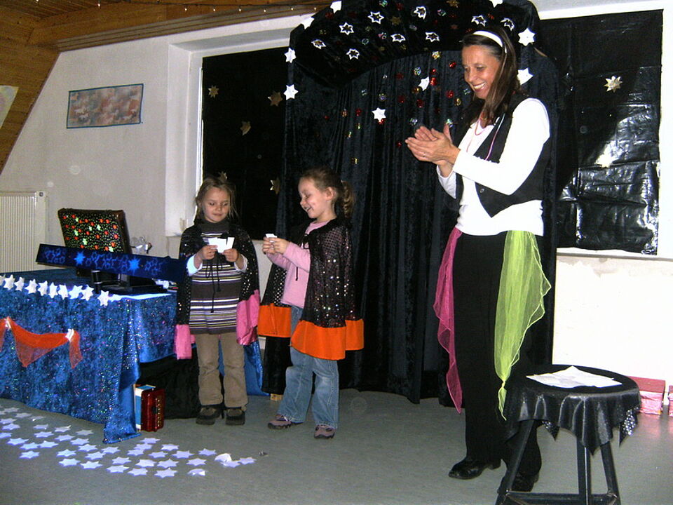 Am Vormittag besuchten die Kinder die Zauberwerkstatt von Marita Althoff-Mehl in der Turnhalle des Kindergartens. Es wurden Requisiten für den eigenen Zauberkasten erstellt, und die Kinder lernten einfache, aber faszinierende Kunststücke.
