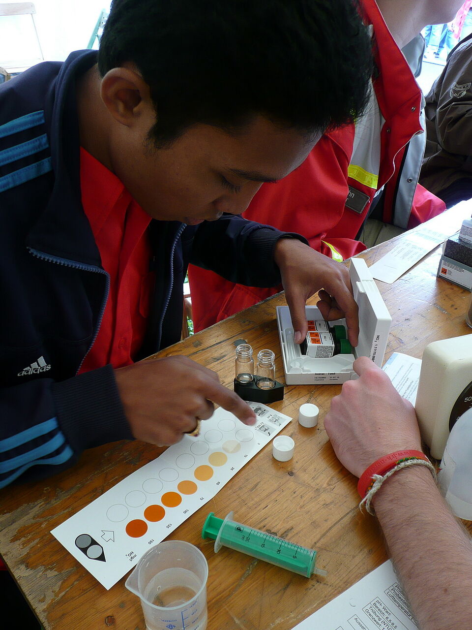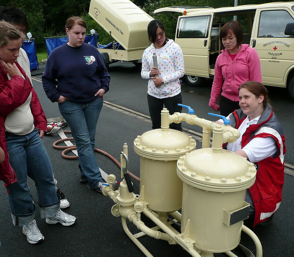 Bild DRK ZR | Einer der internationalen Besucher lernt die Möglichkeiten der Wasseraufbereitung kennen. Vielleicht hat er später einmal Gelegenheit, das Gelernte in seiner Heimat bei einem Katastropheneinsatz anzuwenden.