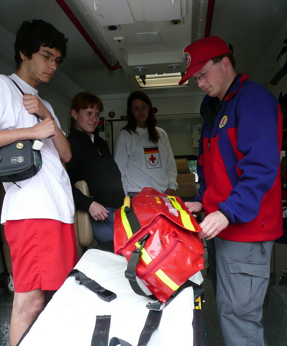 Bild DRK ZR | Markus Zimmermann aus Bad Münstereifel erklärt den Gästen aus aller Welt einen Rettungswagen und die Arbeitsweise des Rettungsdienstes im Kreis Euskirchen.