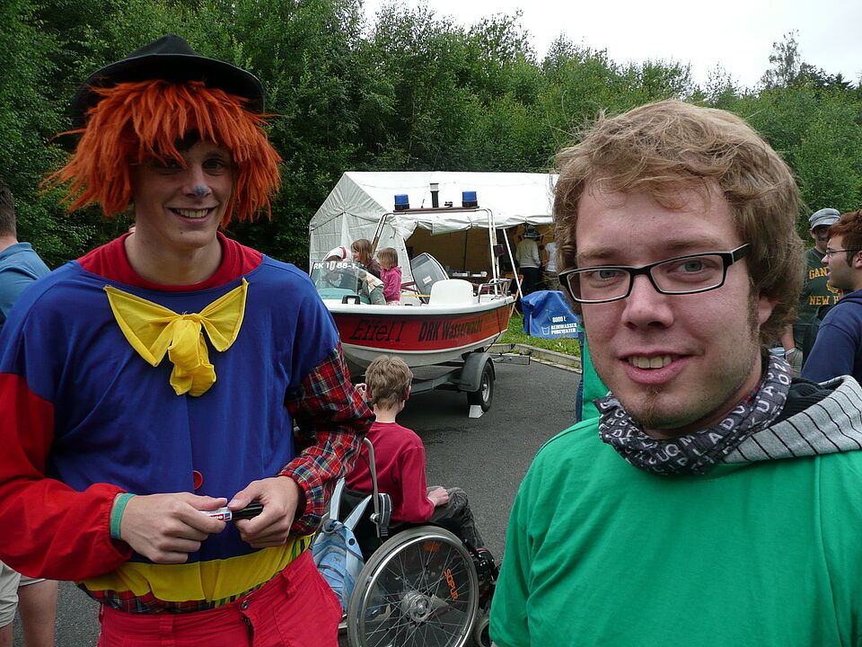 Bild DRK ZR | Ein Clown vom Jugendrotkreuz zeigte sich am Fahrzeug der Redaktion von drk-eu.de