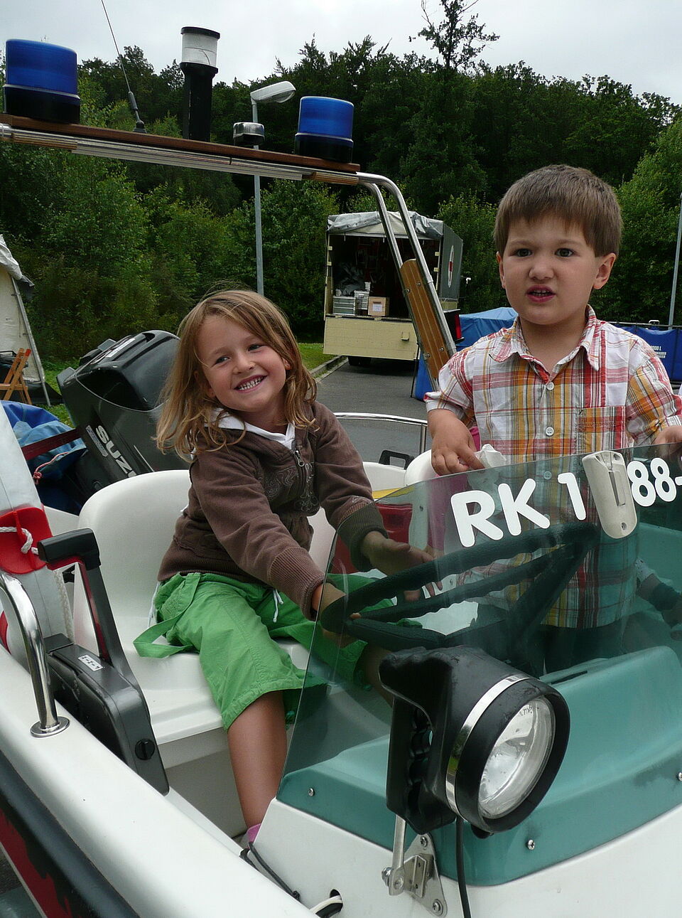 Bild DRK ZR | Die Kinder waren begeistert vom Rettungsboot "Eifel 1" der Rotkreuz-Wasserwacht aus dem Kreis Euskirchen.